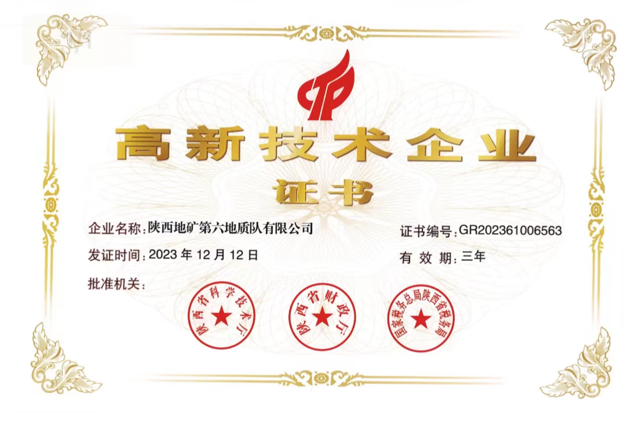 喜報(bào)!陜西地礦六隊(duì)取得高新技術(shù)企業(yè)證書