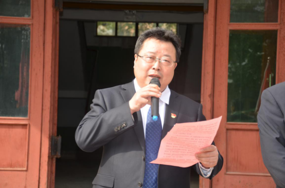 圖為黨委書記、執行董事劉曉東為黨支部授旗