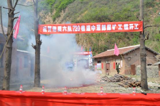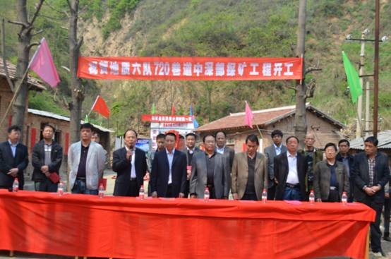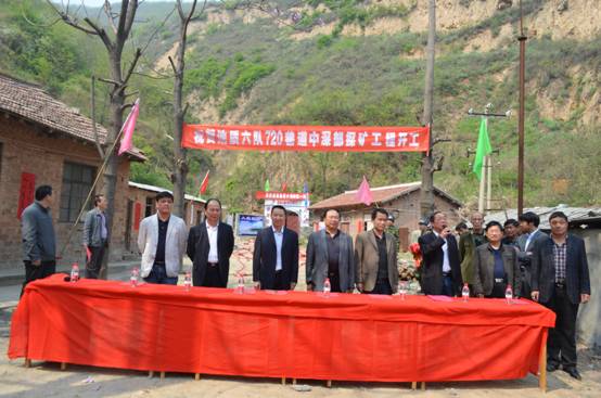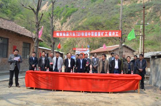 4月18日上午10時30分,我隊潼關(guān)整裝勘查合作開發(fā)項目(國家整裝勘查小秦嶺第一坑)——720巷道中深部探礦工程開工儀式在潼關(guān)榮易溝隆重舉行。省地礦總公司總工齊文、勘查開發(fā)部主任馬貴鎖、地質(zhì)調(diào)查研究中心副主任侯滿堂蒞臨了開工儀式并做重要講話。王根寶隊長致歡迎詞,隊黨委書記冀興臣宣布開工。隊領(lǐng)導(dǎo)、中層干部及合作單位施工人員近100人參加了開工儀式。