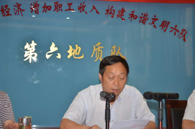 6月28日上午,我隊在臨潼代王隊部召開了“紀念建黨92周年暨表彰大會”,會上,隊黨委書記長冀興臣做了題為  銘記黨史,牢記宗旨,永葆本色,用實際行動為實現“六隊夢”增光添彩”的講話。給到會黨員上了一堂生動富有教育意義的黨課,振奮人心。會上,表彰了在創先爭優活動中成績突出的3個先進黨支部、5個先進黨小組和19名優秀共產黨員。同時,2名新黨員面對鮮紅的黨旗,舉起右手,莊嚴宣誓。最后隊長王根寶做了重要講話,講話指出,一是要認清形勢,把分公司(隊)的發展目標落到實處。首先要充分認識到,穩定是基礎、是保障,發展是硬道理。其次要充分認識到,我們目前仍存在著困難和問題,面臨著職工窮、單位窮、環境差等。二、振奮精神,以“核心價值觀”推動我隊各項工作不斷取得新成就。一是深刻認識到我隊提出的“核心價值觀”和目前所干的事業,上合國策,下合民意。二是牢記責任,牢固樹立全局觀念,努力把分公司(隊)的事情做好。三、求真務實,扎實做好本職工作。一是要增強工作的主動性,不搞表面文章,真抓實干,專心致志地把心思用在工作和生產上。比如目前黃金價格暴跌,我們如何應對?實體單位更要積極應對,拿出切實可行的應對措施。二是要“追求卓越”,樹立更高的工作標準。四、凝聚力量,與廣大職工共創和諧。一是要為職工創造良好的工作環境。對待職工提出的問題,能夠解決的就要立即解決。能夠改進的就要立即改進。暫時不能解決的,也要解釋清楚。二是人要有精神,要有夢想,并將自己的夢想與六隊的發展夢結合起來,才能出彩,才能實現自己的夢想。