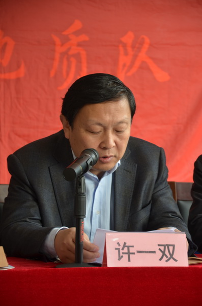 會(huì)議由隊(duì)黨委委員、隊(duì)長(zhǎng)王根寶主持。西安市國(guó)資委黨委副書(shū)記兼紀(jì)委書(shū)記許一雙、西安市國(guó)資委正處級(jí)調(diào)研員胡國(guó)強(qiáng)、省地礦總公司黨委副書(shū)記兼工會(huì)主席吳學(xué)海、省地礦總公司工會(huì)常務(wù)副主席兼黨群工作部主任王建洲、省地礦總公司黨群工作部主辦科員姚鵬等上級(jí)領(lǐng)導(dǎo)出席了大會(huì)。許一雙副書(shū)記、吳學(xué)海副書(shū)記分別在會(huì)上作了講話(huà)。