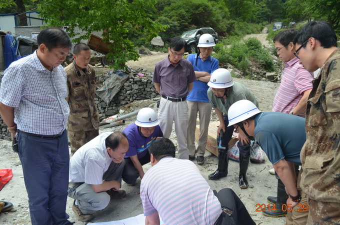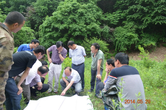 5月29日,第一物化探隊、二物、一水等單位的主要領導及技術人員,在隊長王根寶、副隊長夏元鵬陪同下參觀考察我隊洛南自有礦權區勘查開發情況。