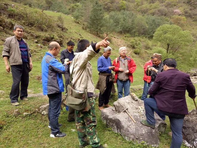 在驗收期間,專家組在詳細聽取了項目負責趙西鋒關于項目野外工作情況匯報后,重點對發現的金礦化點和兩條晶質石墨、金紅石、矽線石礦帶進行了實地檢查驗收。