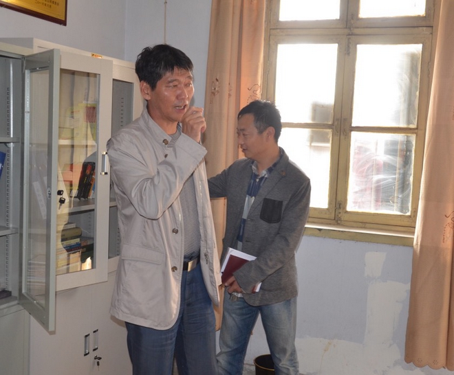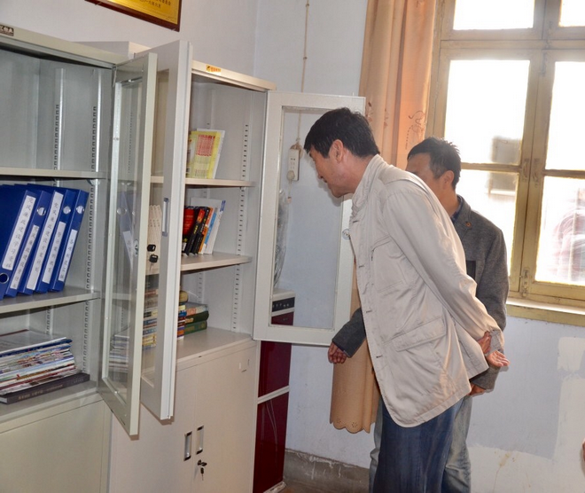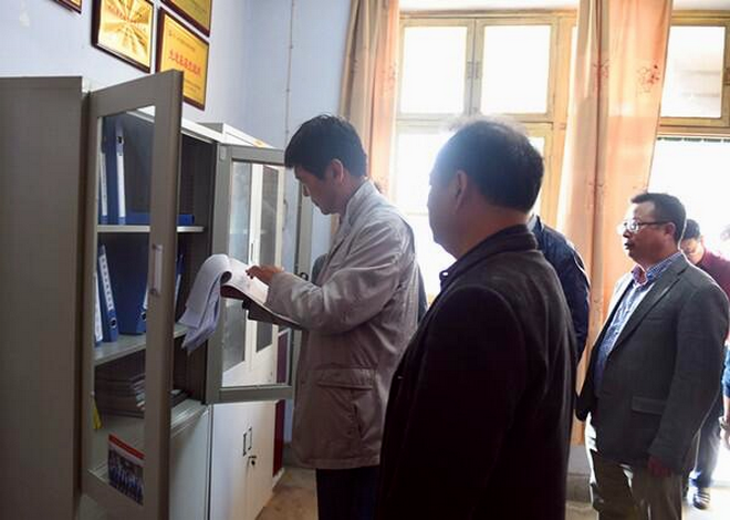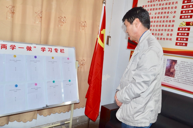 趙廷周查看黨支部“兩學(xué)一做”學(xué)習(xí)資料