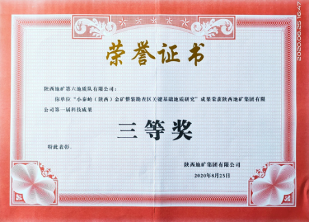 集團公司第一屆優秀科技成果評選共設置十一個獎項,其中由我公司地質調查所申報的小秦嶺(陜西)金礦整裝勘查區關鍵基礎地質研究項目喜獲“科技成果三等獎”,彰顯了科技創新在公司深部找礦特別是小秦嶺金礦整裝勘查區深部找礦突破方面發揮了技術引領作用,對帶動公司走持續科技創新發展道路具有重要意義。
