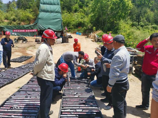 12日,專家組一行抵達我公司潼關礦區728探礦坑口,了解探礦坑口施工進展后,深入坑道進行實地檢查指導。13日前往洛南綜合物探普查項目,聽取項目匯報,與項目組技術人員開展交流討論,隨后深入到深鉆施工現場,詳細了解鉆探施工進展情況,檢查了鉆探施工場地環境,詳細查看了鉆孔巖心,并對編錄及取樣情況進行了實地檢查;14日專家組對山陽縣小西溝鈷鎳礦普查項目進行了野外實地檢查。