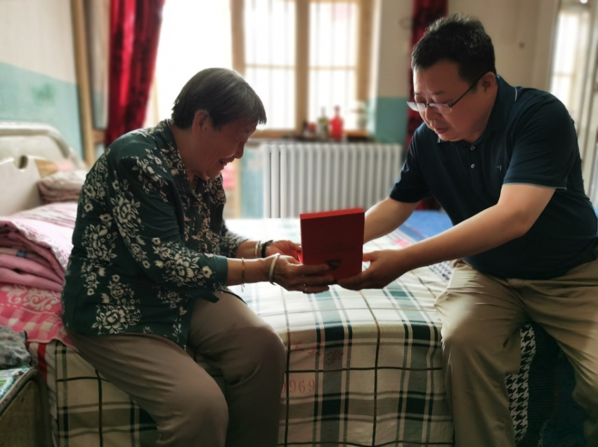 劉曉東一行來到有50年黨齡的老黨員秦啟萍家中,與老人親切交談,詳細了解其入黨經(jīng)歷、工作履歷、家庭生活等情況,并為她送去“光榮在黨50年”紀念章,送上節(jié)日祝福,看到老人積極樂觀,劉曉東十分欣慰,叮囑她保重身體,安享晚年。