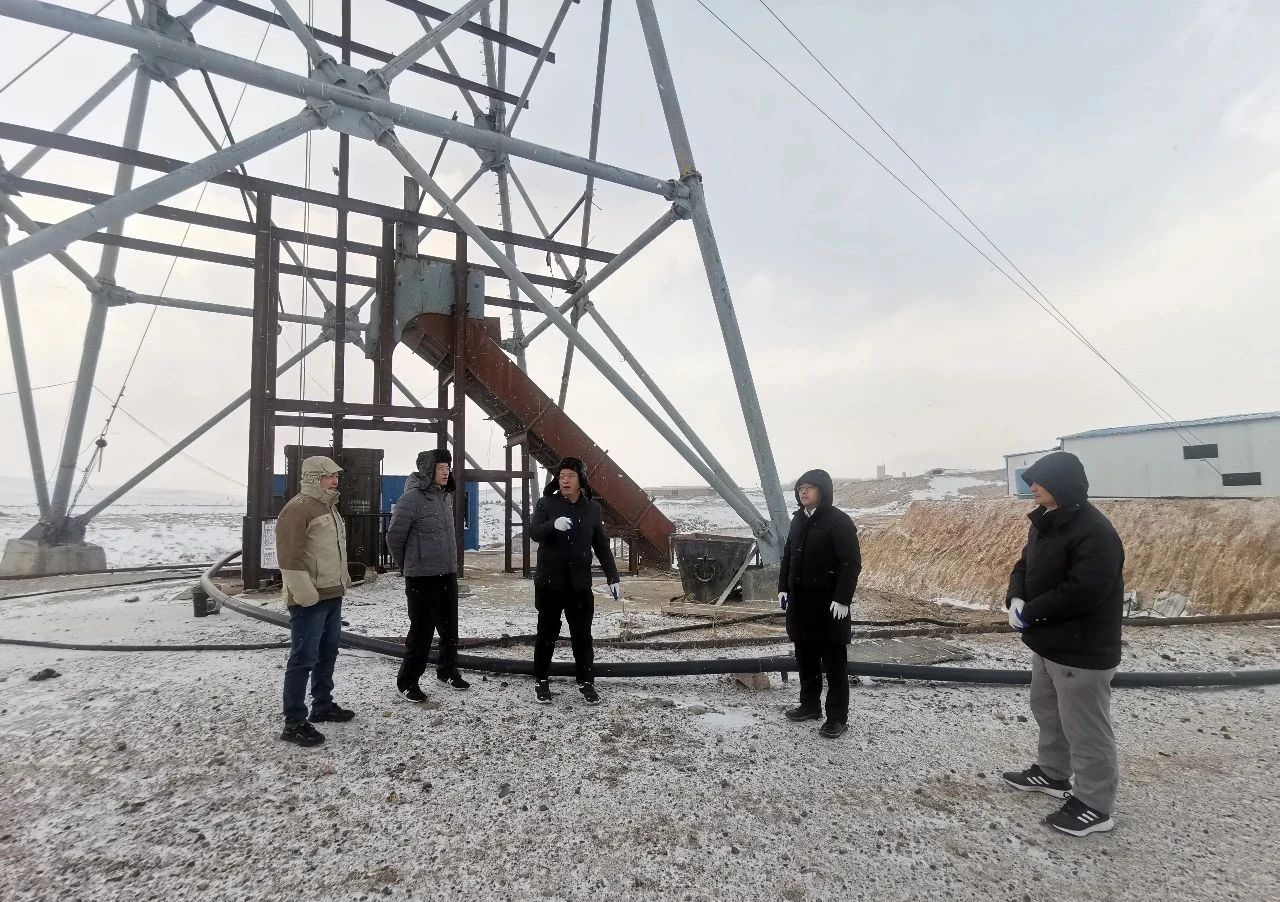 11月8日,劉勐一行查看了合資公司在旗辦公場所,隨后冒著大雪前往當地一家生產礦山企業實地考察,先后深入螢石礦山、選礦廠、尾礦庫參觀,詳細了解礦山規模、礦石品位、開采方式、選礦工藝、尾礦處理等。